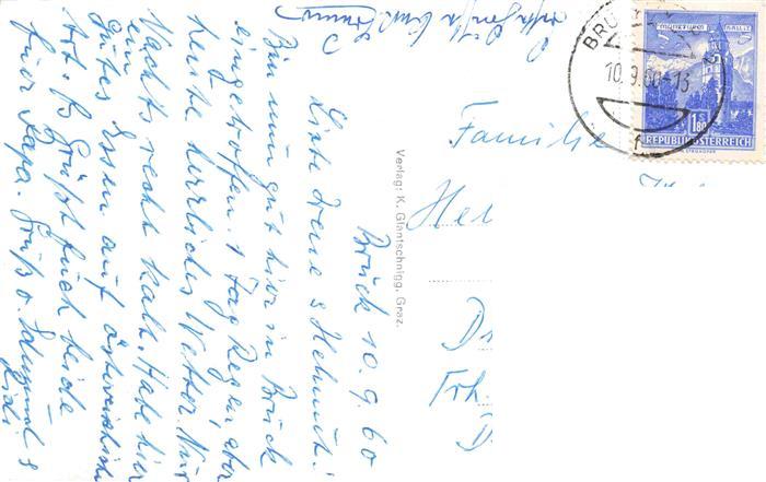 73973328 alte Postkarte Bruck Mur AT Hauptplatz mit Kornmesserhaus postalisch gelaufen Erhaltung siehe scans [FriedD77] KatCode: 11390223060204
