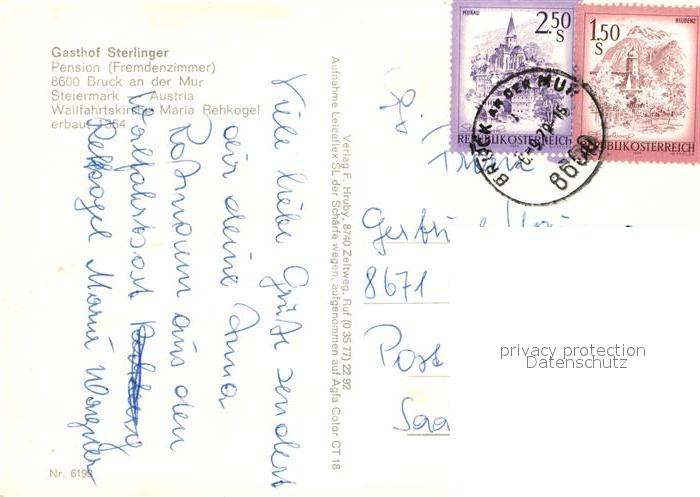 73033380 alte Postkarte Bruck Mur Gasthof Sterlinger Wallfahrtskirche Maria Rehkogel postalisch gelaufen Erhaltung siehe scans [PaolaD17] KatCode: 11390223060204