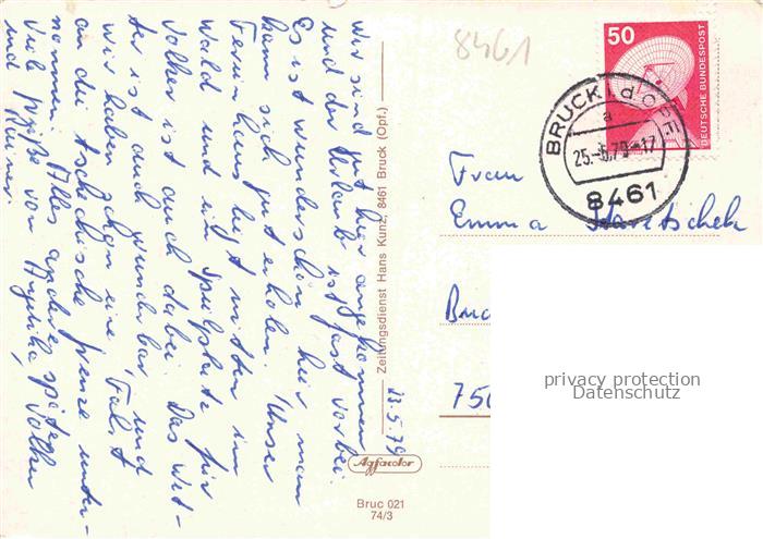 74049485 alte Postkarte Bruck Oberpfalz Marktplatz Altenheim St. Elisabeth Flugplatz Wandertafel postalisch gelaufen Erhaltung siehe scans [FriedD77] KatCode: 11110009376117