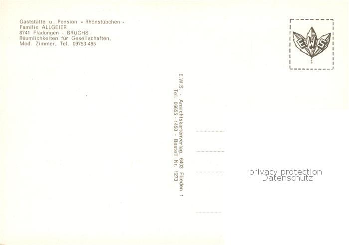 73845668 Bruechs Panorama Gaststaette Pension Rhoenstuebchen Gastraeume postalisch nicht gelaufen Erhaltung siehe scans [FriedD77] KatCode: 11110009673123
