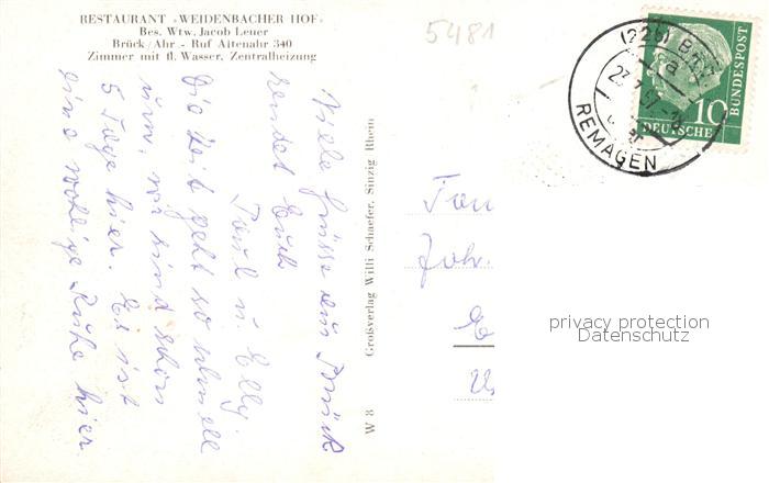 73790937 alte Postkarte Brueck Ahr Ahrbrueck Restaurant Weidenbacher Hof Aussen- u. Innenansicht postalisch gelaufen Erhaltung siehe scans [LiesaD40] KatCode: 11110007131002