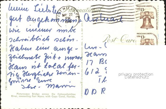 alte Postkarte Bruecken Bauwerke Cape Coral Florida postalisch gelaufen Erhaltung siehe scans