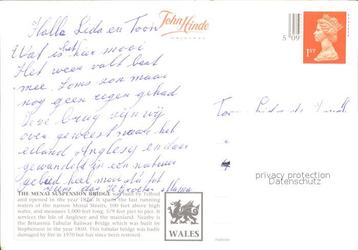Bruecken Bauwerke Menai Suspension Bridge postalisch nicht gelaufen Erhaltung siehe scans