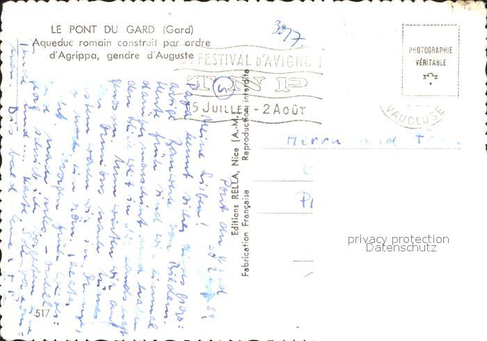 alte Postkarte Bruecken Bauwerke Pont du Gard Aqueduc postalisch gelaufen Erhaltung siehe scans