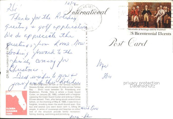 alte Postkarte Bruecken Bauwerke Skyway Twins Before and After postalisch gelaufen