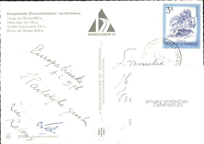 alte Postkarte Bruecken Bridges Ponts Europabruecke Brennerautobahn Schoeberg postalisch gelaufen Erhaltung siehe scans