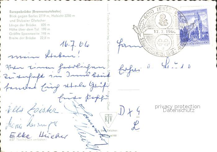 alte Postkarte Bruecken Bridges Ponts Europabruecke Brennerautobahn Serles Habicht postalisch gelaufen Erhaltung siehe scans