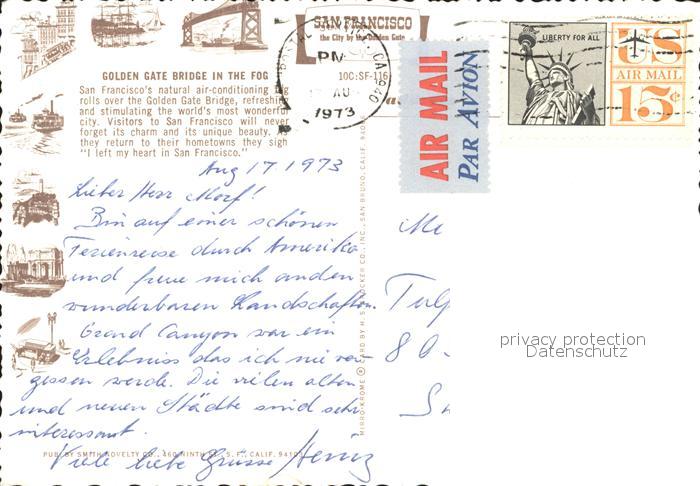alte Postkarte Bruecken Bridges Ponts Golden Gate Bridge in the Fog San Francisco postalisch gelaufen Erhaltung siehe scans