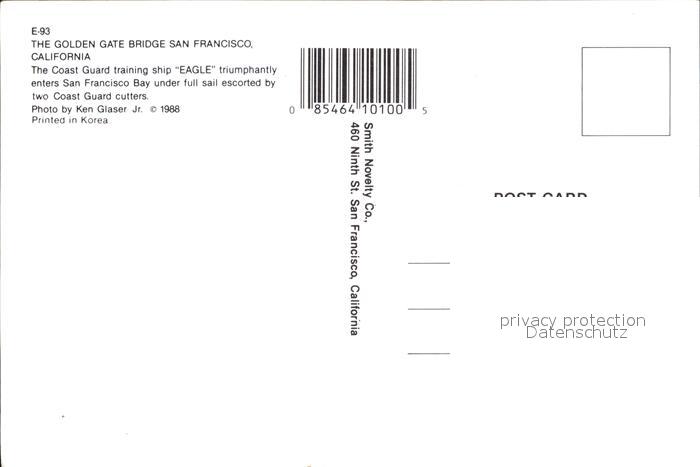 Bruecken Bridges Ponts Golden Gate Bridge San Francisco Coast Guard Ship Eagle postalisch nicht gelaufen Erhaltung siehe scans