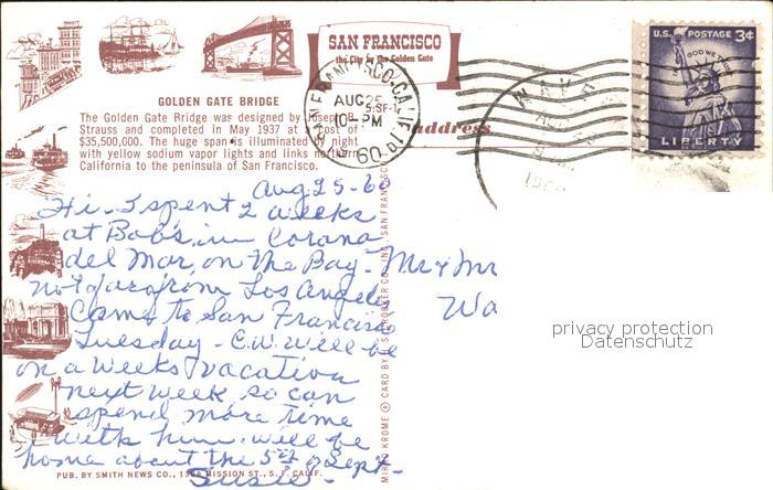 alte Postkarte Bruecken Bridges Ponts Golden Gate Bridge postalisch gelaufen Erhaltung siehe scans