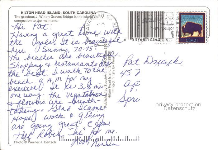 alte Postkarte Bruecken Bridges Ponts J. Wilton Graves Brodge Hilton Head Island South Carolina postalisch gelaufen Erhaltung siehe scans
