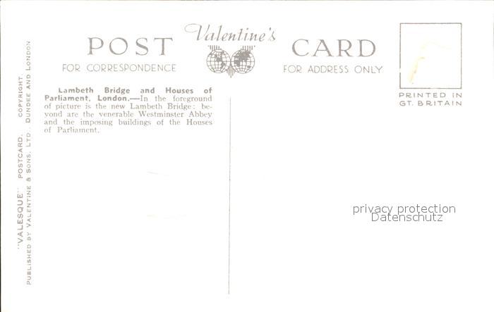 Bruecken Bridges Ponts Lambeth Bridge Houses of Parliament London postalisch nicht gelaufen Erhaltung siehe scans