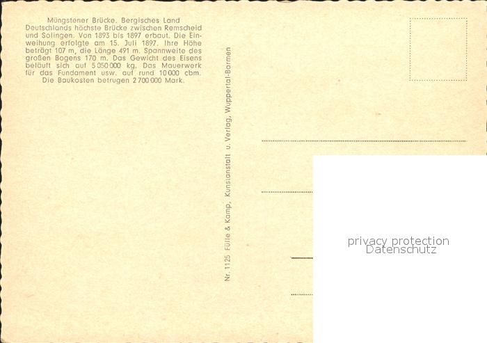 Bruecken Bridges Ponts Muengstener Bruecke Begisches Land postalisch nicht gelaufen Erhaltung siehe scans