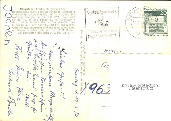 alte Postkarte Bruecken Bridges Ponts Muengstener Bruecke Bergisches Land postalisch gelaufen Erhaltung siehe scans