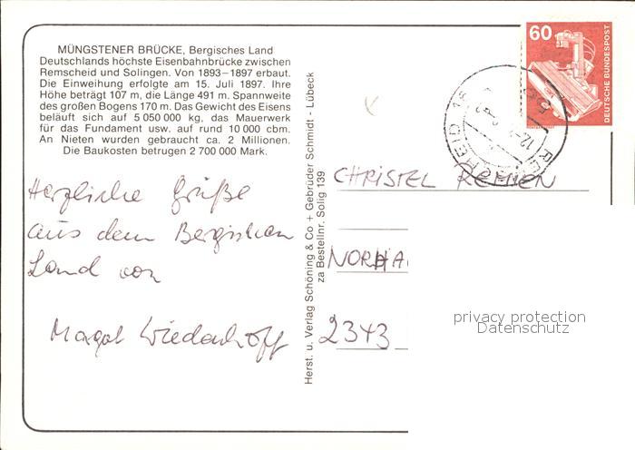 alte Postkarte Bruecken Bridges Ponts Muengstener Bruecke Bergisches Land postalisch gelaufen Erhaltung siehe scans