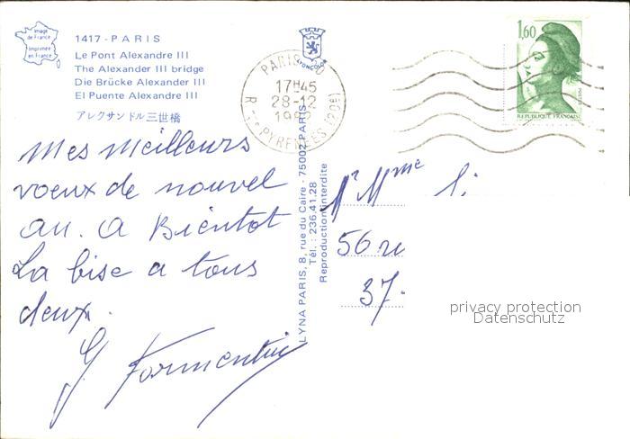 alte Postkarte Bruecken Bridges Ponts Pont Alexandre III Paris postalisch gelaufen Erhaltung siehe scans
