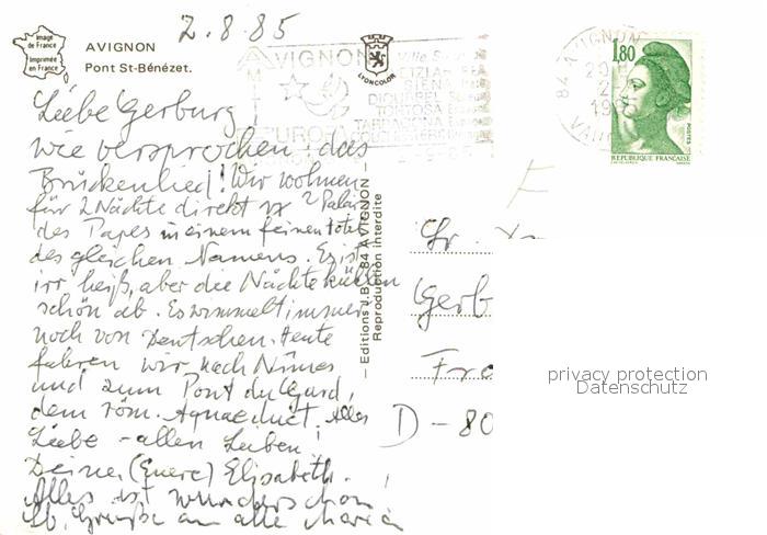 Bruecken Bridges Ponts Pont St.Benezet Liederkarte Avignon