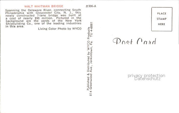 Bruecken Bridges Ponts Walt Whitman Bridge Delaware River postalisch nicht gelaufen Erhaltung siehe scans