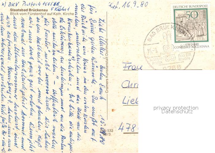 73180095 alte Postkarte Brueckenau Bad Kirche Fuerstenhof postalisch gelaufen Erhaltung siehe scans [KathaD81] KatCode: 11110009672113