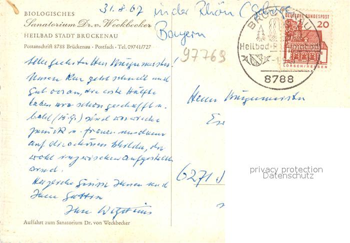 73118958 alte Postkarte Brueckenau Bad Sanatorium Dr. v. Weckbecker postalisch gelaufen Erhaltung siehe scans [LiesaD40] KatCode: 11110009672113