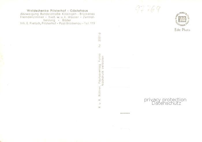 73857910 Brueckenau Bad Waldschenke Pilsterhof Gaestehaus postalisch nicht gelaufen Erhaltung siehe scans [FriedD77] KatCode: 11110009672113