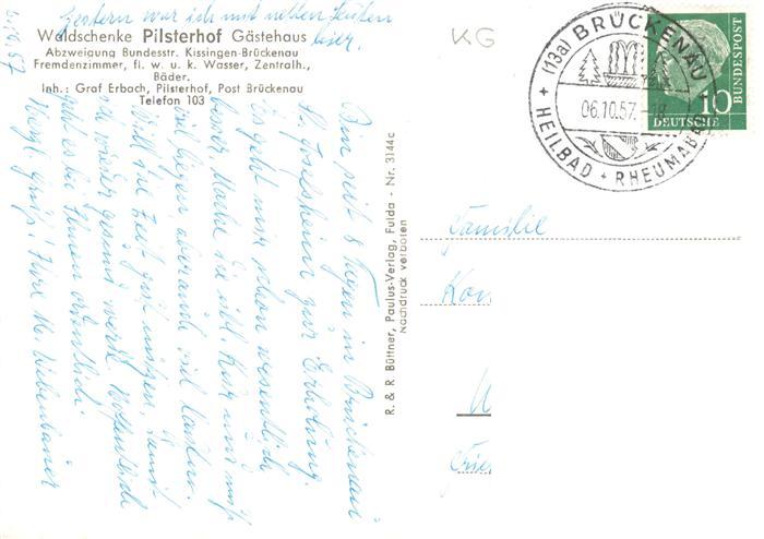 73896462 alte Postkarte Brueckenau Bad Waldschenke Pilsterhof Gaestehaus Panorama postalisch gelaufen Erhaltung siehe scans [WerneD78] KatCode: 11110009672113