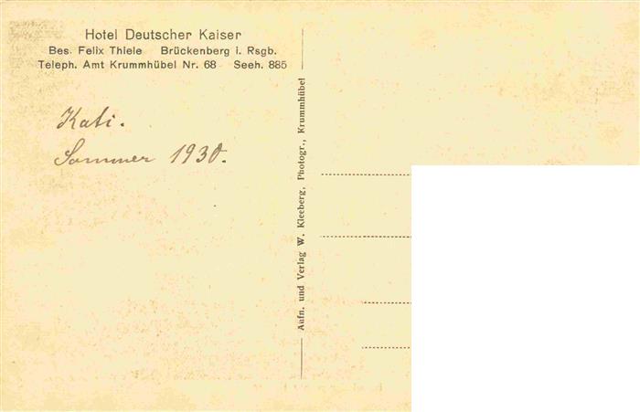 73972511 Brueckenberg Krummhuebel Riesengebirge PL Hotel Deutscher Kaiser Restaurant postalisch nicht gelaufen Erhaltung siehe scans [FriedD77] KatCode: 11410