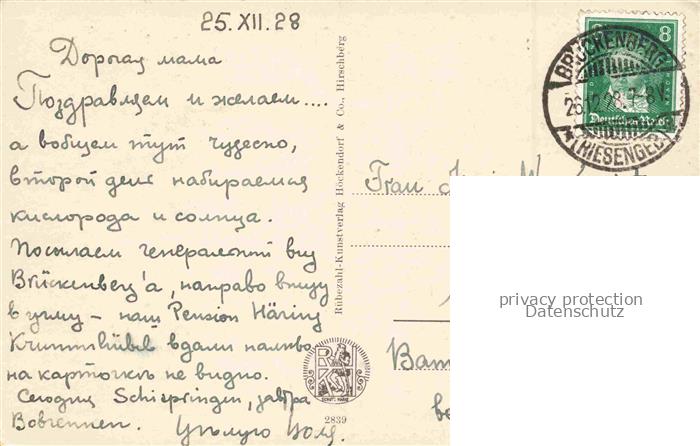74030367 old postcard Brueckenberg Krummhuebel Riesengebirge PL Winterpanorama postalisch gelaufen Erhaltung siehe scans [FriedD77] KatCode: 11410