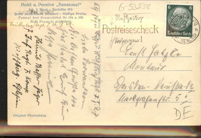 41019853 Brueckenberg Riesengebirge Riesengebirge Hotel Sanssouci postalisch gelaufen Alte Ansichtskarte Postkarte old postcard Katcode 11520