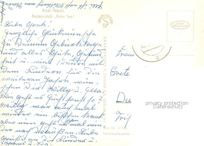 73675711 alte Postkarte Brueel Mecklenburg Vorpommern Badeanstalt Roter See postalisch gelaufen Erhaltung siehe scans [FriedD77] KatCode: 11110013060007
