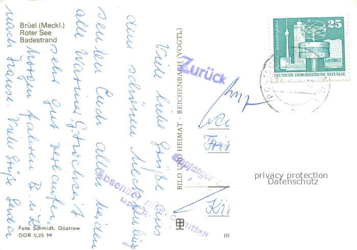 34142957 alte Postkarte Brueel PARCHIM Mecklenburg-Vorpommern Badestrand Roter See postalisch gelaufen Erhaltung siehe scans [FriedD77] KatCode: 11110013060007