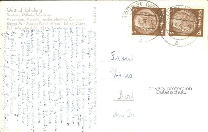 31702402 alte Postkarte Bruegge Westfalen Winkhausen Gasthof Erholung postalisch gelaufen Erhaltung siehe scans KatCode: 11110005962032