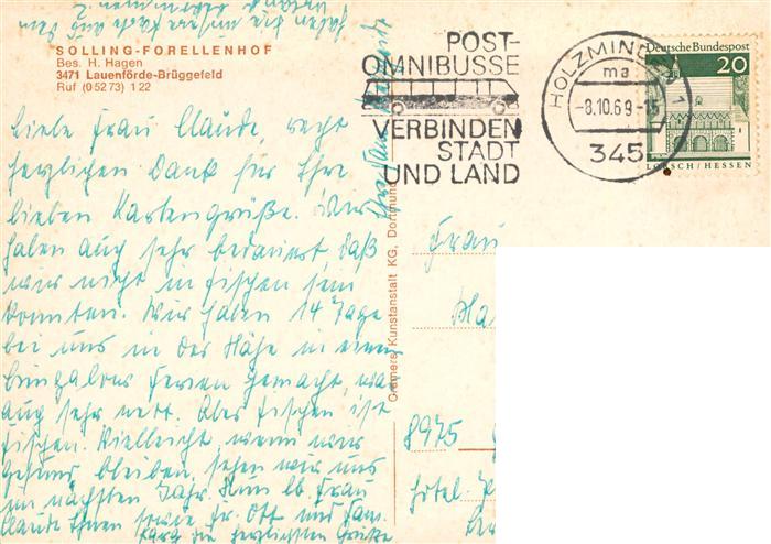 73943997 alte Postkarte Brueggefeld Lauenfoerde Solling Forellenhof Gastraum postalisch gelaufen Erhaltung siehe scans [FriedD77] KatCode: 11110003255026