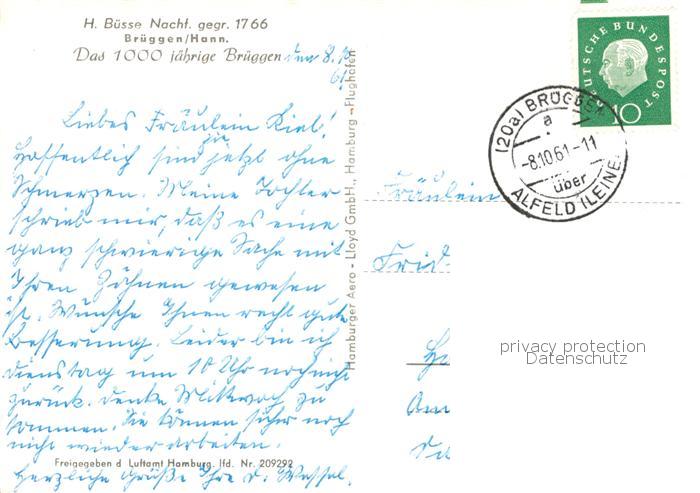 73821896 alte Postkarte Brueggen Leine (Hann) Fliegeraufnahme postalisch gelaufen Erhaltung siehe scans [WerneD78] KatCode: 11110003254009