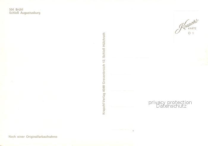73262275 Bruehl Baden Schloss Augustusburg postalisch nicht gelaufen Erhaltung siehe scans [LiesaD40] KatCode: 11110008226009