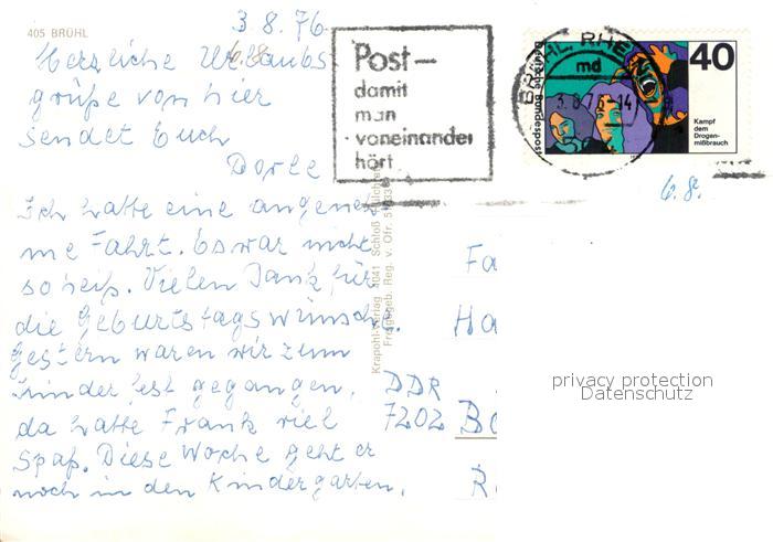 73171812 alte Postkarte Bruehl Rheinland Fliegeraufnahme postalisch gelaufen Erhaltung siehe scans [NatalD47] KatCode: 11110005362012