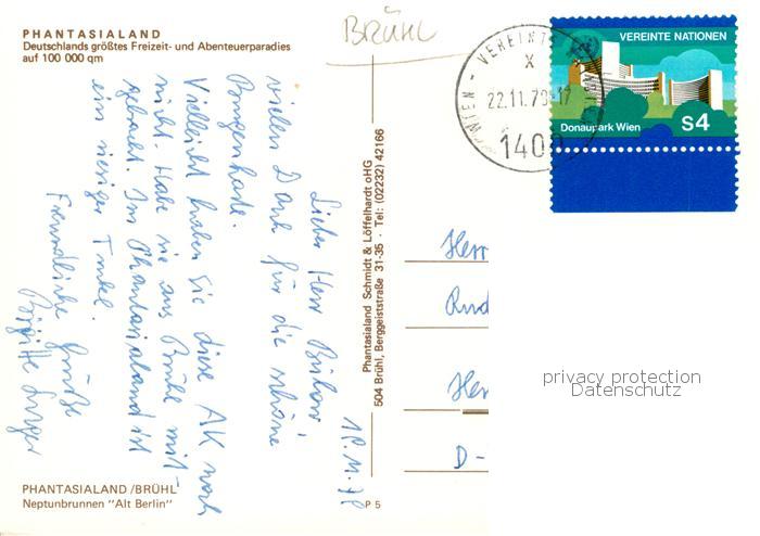 73801202 alte Postkarte Bruehl Rheinland Phantasialand Freizeit und Abenteuerparadies postalisch gelaufen Erhaltung siehe scans [WerneD78] KatCode: 11110005362012