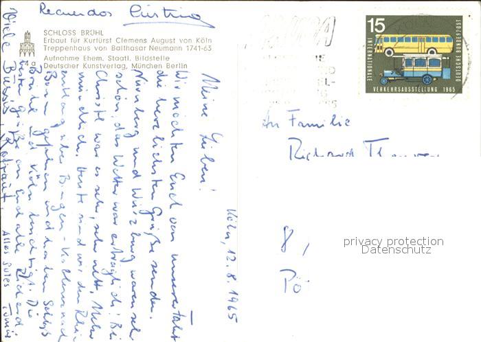 72389246 alte Postkarte Bruehl Rheinland Schloss Treppenaufgang postalisch gelaufen Erhaltung siehe scans KatCode: 11110005362012