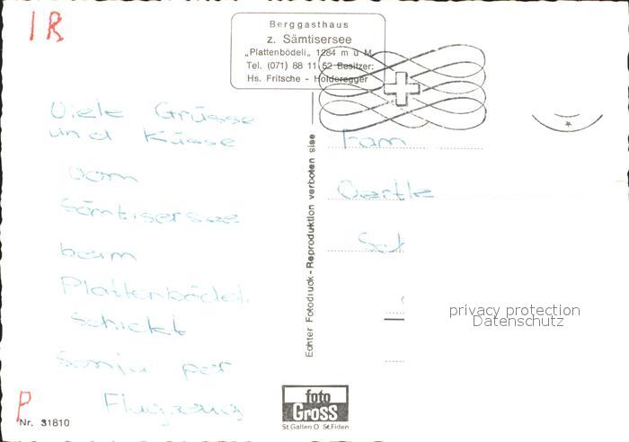 11628267 alte Postkarte Bruelisau Berggasthaus Saemtisersee Plattenboedeli postalisch gelaufen Erhaltung siehe scans KatCode: 11470030075600