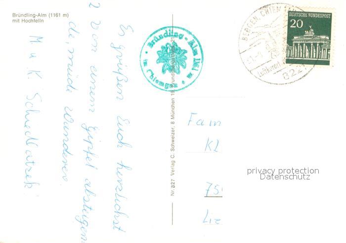 73717720 alte Postkarte Bruendlingalm 1161m Hochfelln mit Hochfelln postalisch gelaufen Erhaltung siehe scans [WerneD78] KatCode: 11110009187123