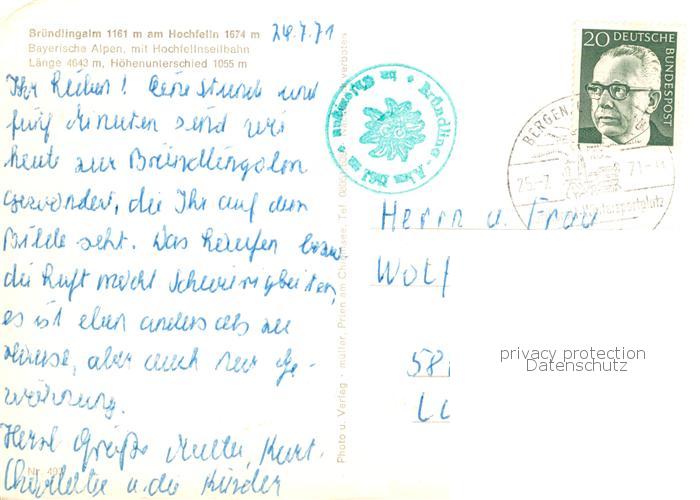 73837027 alte Postkarte Bruendlingalm 1161m Hochfelln mit Hochfellnbahn Bayerische Alpen postalisch gelaufen Erhaltung siehe scans [FriedD77] KatCode: 11110009187123