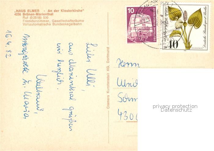 73333100 alte Postkarte Bruenen Marienthal Haus Elmer An der Klosterkirche postalisch gelaufen Erhaltung siehe scans [LiesaD40] KatCode: 11110005170012