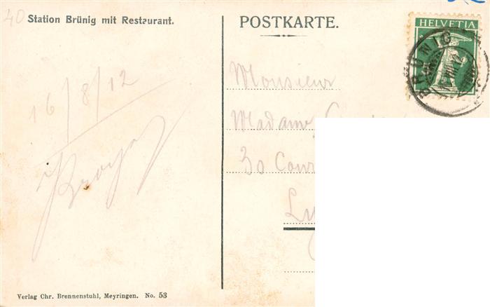 13919897 alte Postkarte Bruenig OW Station Bruenig mit Restaurant postalisch gelaufen Erhaltung siehe scans [FriedD77] KatCode: 11470410325532