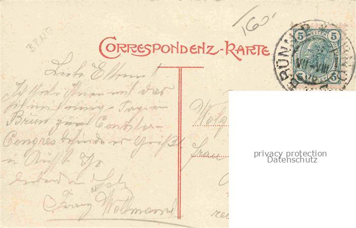14110334 old postcard Bruenn BRNO CZ Stadtpanorama Grosser Platz Rennergasse Jesuitenkirche postalisch gelaufen Erhaltung siehe scans [FriedD77] KatCode: 11520