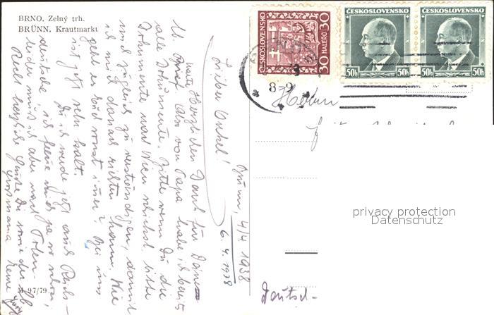 12194783 old postcard Bruenn Brno Krautmarkt postalisch gelaufen Erhaltung siehe scans KatCode: 11520