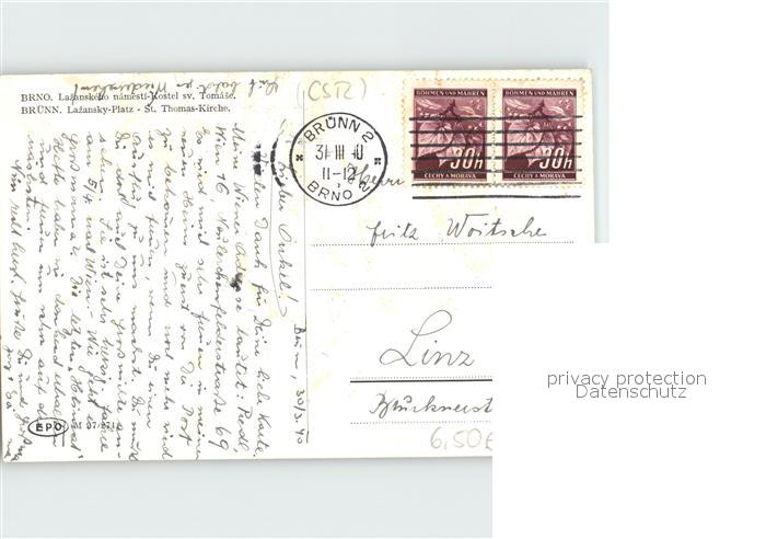 12217117 old postcard Bruenn Brno Lazansky Platz postalisch gelaufen Erhaltung siehe scans KatCode: 11520