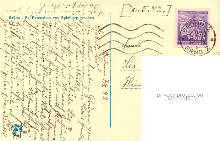 old postcard Bruenn Brno St Petersdom von Spielberg gesehen postalisch gelaufen Erhaltung siehe scans [WerneD78]