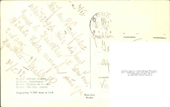 old postcard Bruenn Brno Stadttheater postalisch gelaufen Erhaltung siehe scans