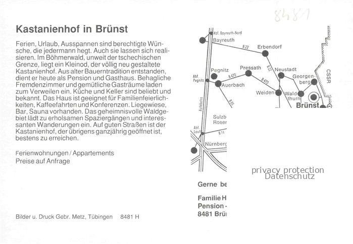 74049974 Bruenst Georgenberg Hotel Pension Kastanienhof Restaurant Fremdenzimmer postalisch nicht gelaufen Werbekarte (keine Postkarte) Erhaltung siehe scans [FriedD77] KatCode: 11110009374123