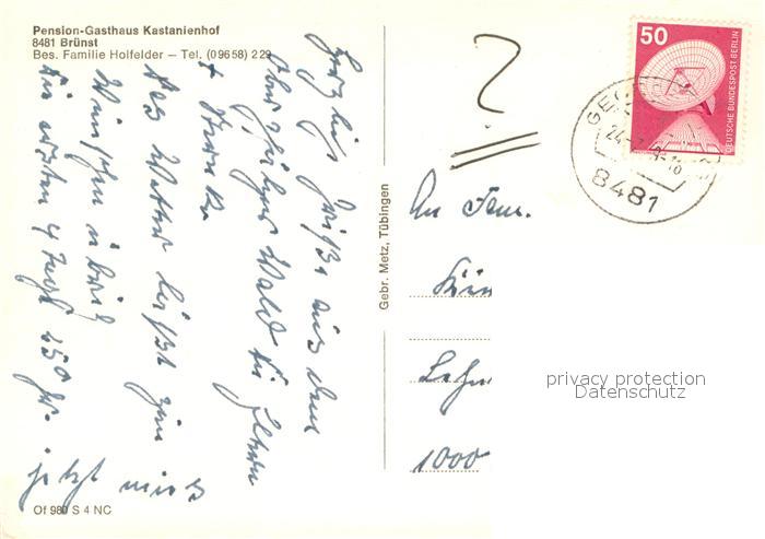 73650969 alte Postkarte Bruenst Georgenberg Pension Gasthaus Kastanienhof postalisch gelaufen Erhaltung siehe scans [WerneD78] KatCode: 11110009374123